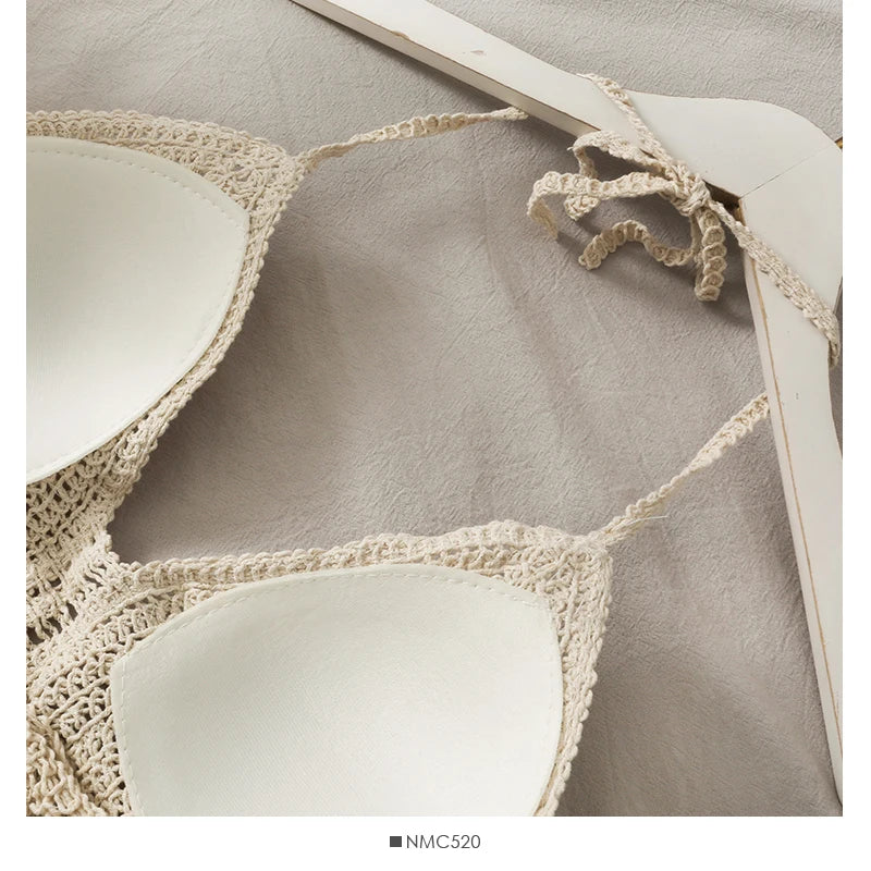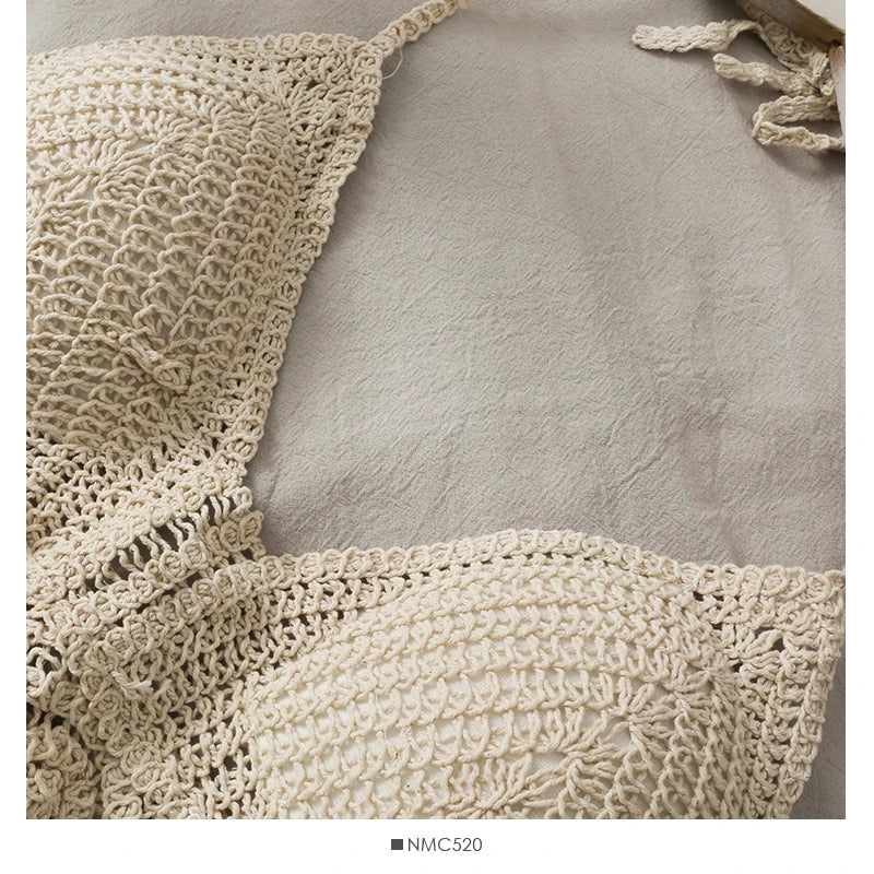 2024 Crop Tops Retro Wild Hollow Perspective Tassel Sexy Spaghetti Strap Tanke Top Women Built In Bra New Back Lace Halter Neck