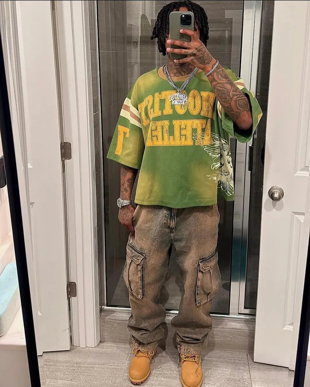 American Retro Gothic Fashion Summer Casual Hip-hop Splicing T-shirt Men's Y2K Personalized Street Retro Sports Jersey Top