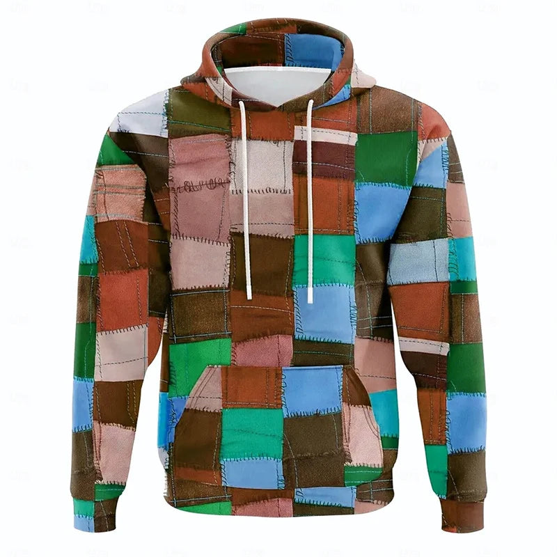 Plaid Patchwork Print Hoodie Men's Casual Daily Clothing Oversized Hooded Coat 3d Print Harajuku Street 2025 Fashion New Hoodies