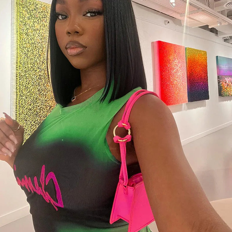 Simenual Fairy Grunge Tie Dye Printed Sleeveless Tank Top Sexy Mesh See Through Crop Tops Women Hot Club Vest Y2K Slim Clothing